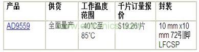 AD9559時(shí)鐘轉(zhuǎn)換器尺寸為10 mm x 10 mm,便于線路卡設(shè)計(jì)人員獲得緊湊、頻率捷變、高性價(jià)比的時(shí)鐘。適合的應(yīng)用包括數(shù)據(jù)通信、新一代有線網(wǎng)絡(luò)應(yīng)用、測(cè)試和測(cè)量、高速數(shù)據(jù)采集、視頻應(yīng)用以及無(wú)線基站控制器。
