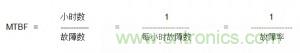 想要將一個部件的材料清單(BOM)與另一個部件的材料清單進行比較會怎么樣呢?能不能將每個元件的MTBF簡單地加在一起,來確定總體可靠性呢?可惜的是:不可以。這是因為MTBF代表的是出現(xiàn)故障的小時數(shù),按照加法計算是不起作用的。然而,故障率,一個代表每小時發(fā)生故障的次數(shù),是可以相加。慶幸的是將MTBF轉(zhuǎn)換成故障率僅是一個很簡單分?jǐn)?shù)關(guān)系。以下是公式: