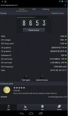 安兔兔跑分對(duì)比(左為RK3168,右為全志A20)