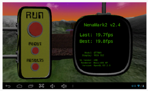 NenaMark2是一款用于Android設(shè)備的硬件加速基準(zhǔn)測(cè)試程序,通過(guò)演示一款實(shí)時(shí)渲染的畫(huà)面來(lái)對(duì)手機(jī)的圖形能力進(jìn)行測(cè)試,包括反射、動(dòng)態(tài)陰影、曲面參數(shù)、復(fù)雜光線(xiàn)模式等內(nèi)容,需要Android 2.0以上系統(tǒng)和OpenGL ES 2.0支持。
