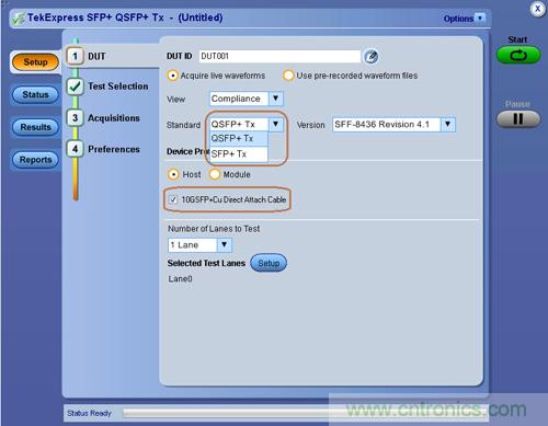 SFP+QSFP+Tx解決方案利用簡單的菜單驅(qū)動式測量設(shè)置以及提供一鍵式一致性測試,加上自動的“通過/失敗”報告生成,幫助提高測試測量效率。除標準的一致性要求外,該解決方案還支持設(shè)計鑒定,并具有對測試配置(如分析窗口和其他參數(shù))的靈活控制。如對設(shè)計的一致性測試失敗,使用者可利用DPOJET(抖動和定時分析)設(shè)置文件來減少調(diào)試時間。