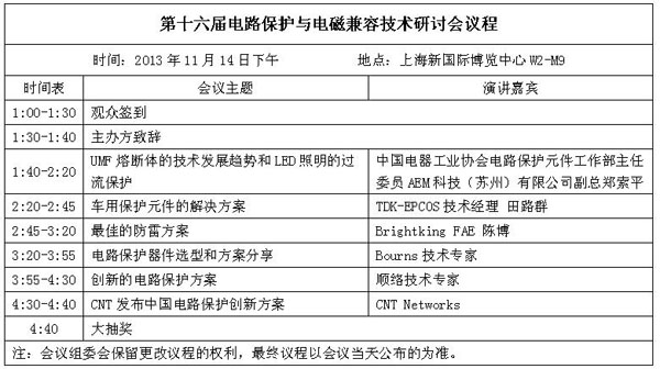 【導(dǎo)讀】2013年11月14日,第十六屆電路保護(hù)與電磁兼容技術(shù)研討會(huì)在上海開(kāi)幕。來(lái)自Bourns、AEM科技 、TDK-EPCOS、君耀電子和順絡(luò)電子等全球知名專家將現(xiàn)場(chǎng)展示最新的產(chǎn)品,針對(duì)工業(yè)、通信、汽車(chē)等長(zhǎng)三角地區(qū)的優(yōu)勢(shì)產(chǎn)業(yè)提供最新解決方案,與廣大長(zhǎng)三角地區(qū)的電子產(chǎn)品設(shè)計(jì)開(kāi)發(fā)人員深入互動(dòng)。