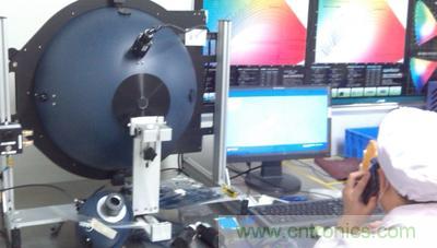 圖2:美國藍(lán)菲光學(xué)(Labsphere)的積分球(左)用于晶科電子(廣州)有限公司的研發(fā)中