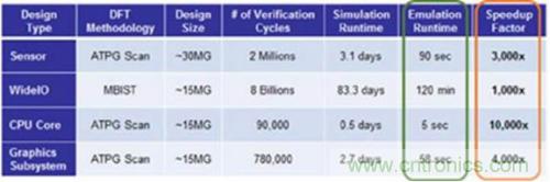 當(dāng)設(shè)計(jì)尺寸達(dá)到數(shù)億門時(shí),基于軟件仿真器的驗(yàn)證對(duì)于門級(jí)檢查而言速度過于緩慢。DFT 方法只會(huì)讓事情變得更糟。如果這些負(fù)擔(dān)還能夠應(yīng)付,那么優(yōu)先使用軟件仿真陣列來推進(jìn)流片有助于設(shè)計(jì)工程師的工作,但會(huì)為測(cè)試工程師帶來阻礙。芯片通常只進(jìn)行極少的 DFT 驗(yàn)證就進(jìn)行流片,而在流片后才執(zhí)行徹底的 DFT 測(cè)試,這時(shí)要修復(fù)設(shè)計(jì)缺陷為時(shí)已晚。