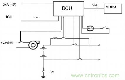 那么動力電池是如何與系統(tǒng)整合的呢?圖3為電池系統(tǒng)原理框圖,他主要包括BCU(電池主控制單元)、HCU(上位機/控制面板)以及MMU(電池從控單元)。首先BCU通過CAN1接收來自HCU的上位機命令,直接控制總負(fù)、正接觸器和預(yù)充