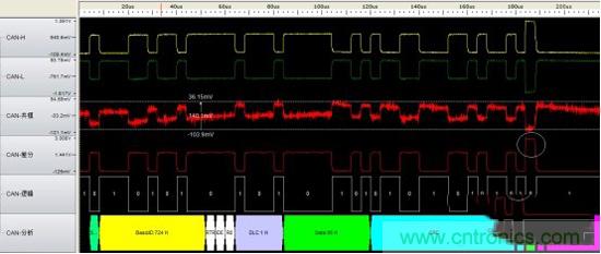 圖4 CAN數(shù)椐幀波形分析