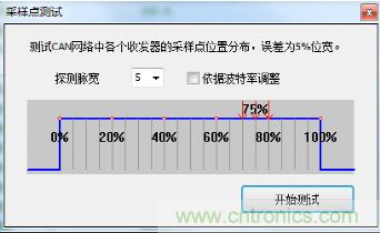 l采樣點測試:采用CANScope對當前波特率下CAN卡的采樣點進行測試,測試結(jié)果為75%;