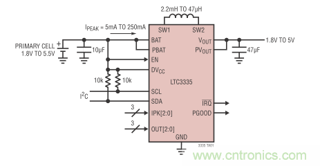 圖 2:簡化的 LTC3335 應(yīng)用原理圖