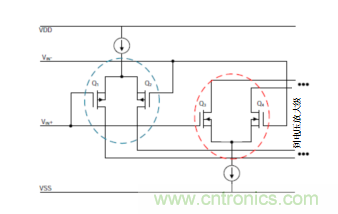 圖1.簡(jiǎn)化的PMOS/NMOS差分對(duì)