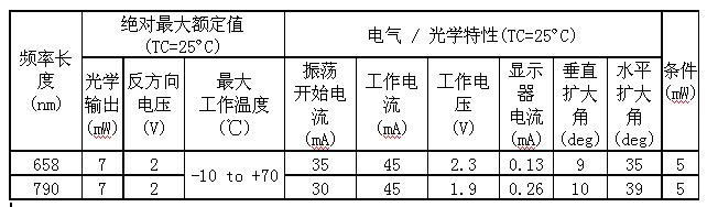 主要規(guī)格(上端:658nm(CD用),下端:790nm (DVD用))
