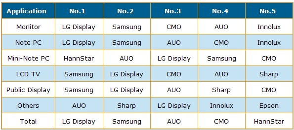 Source: DisplaySearch Quarterly Large Area TFT LCD Shipment Report