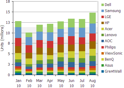 圖一 :2010年1月到8月全球前12大液晶顯示器品牌廠商生產(chǎn)計(jì)劃