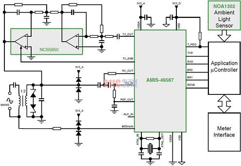 有利的是,設計人員采用安森美半導體的AMIS-49587電力線載波(PLC)調(diào)制解調(diào)器、PLC線路驅(qū)動器NCS5650和諸如NOA1302這樣的環(huán)境光傳感器,基于電力線輕易地構(gòu)建聯(lián)網(wǎng)型LED街燈智能控制系統(tǒng)(參見圖4)。其中,安森美半導體的環(huán)境光傳感器包含的輸出類型,如NOA1302和NOA1305提供的是數(shù)字輸出,而NOA1211為模擬輸出。這些光傳感器的工作電流極低,在100流明光輸出條件下分別僅為58 μA、550 μA和115 μA,因而對系統(tǒng)能效的影響極小。