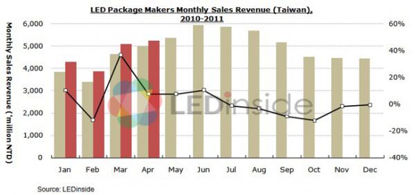 - 四月份臺灣地區(qū)上市柜LED封裝廠營收達(dá)到52.5億元