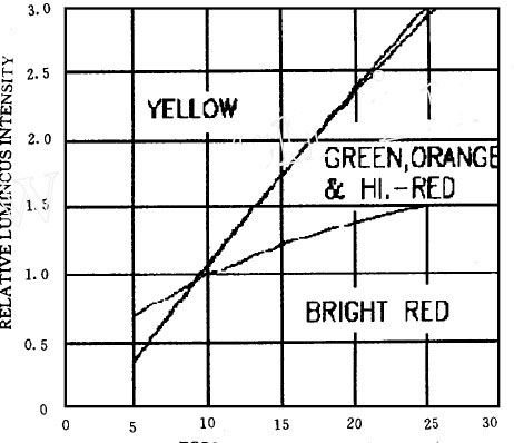 圖3 給出了發(fā)光二極管的相對亮度與其中流過的電流之間的關(guān)系,從曲線中可以看出: 在一定的正向電流工作范圍內(nèi),其發(fā)光亮度與其中流過的電流近似成正比,屬于電流驅(qū)動型器件。所以只要能保證每個L ED 發(fā)光管中流過的電流為一常數(shù),就能保證其亮度一致。