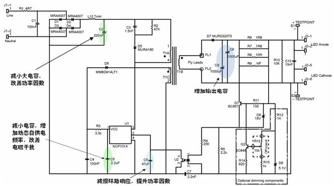 圖6:改善了功率因數(shù)的NCP1014應用電路圖
