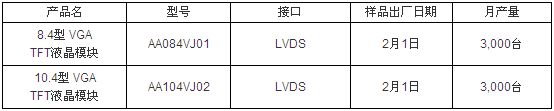 本公司為滿足上述需求,本次特發(fā)售帶有LVDS接口,具有高亮度、高對(duì)比度、寬視角等特點(diǎn)的8.4型、10.4型VGA液晶模塊。