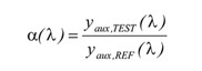 公式(2)中,yTEST (λ)為待測樣品在此系統(tǒng)下的光譜輻射計的讀值、yREF(λ)為參照標(biāo)準(zhǔn)燈在此系統(tǒng)下的光譜輻射計的讀值,α(λ)則為自吸收因子。