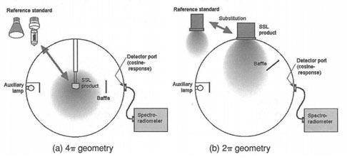 此份規(guī)范定義兩種光通量的量測系統(tǒng)方法,一是使用積分球系統(tǒng),另一種則為使用配光曲線儀系統(tǒng)。使用哪種系統(tǒng)須依據(jù)所要量測的量(顏色、光強度分布)及待測樣品尺寸等來決定。