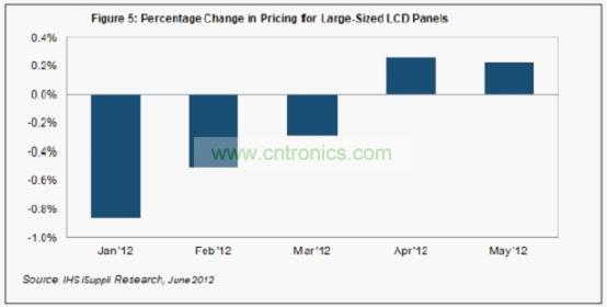據(jù)IHS iSuppli公司的液晶顯示器(LCD)報告,廠商繼續(xù)謹慎控制產(chǎn)量和庫存,以抵消電視、監(jiān)視器和筆記本電腦等主要應(yīng)用領(lǐng)域的疲弱需求,5月大尺寸LCD面板價格微漲。