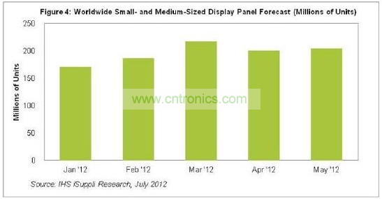 手機(jī)拉動(dòng)5月中小顯示器面板出貨量上升