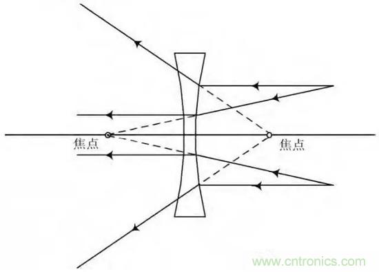 圖2凹透鏡典型光路示意圖