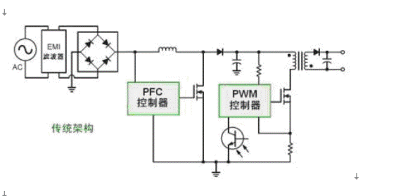 圖3(a):傳統(tǒng)的2段式PFC架構(gòu)。