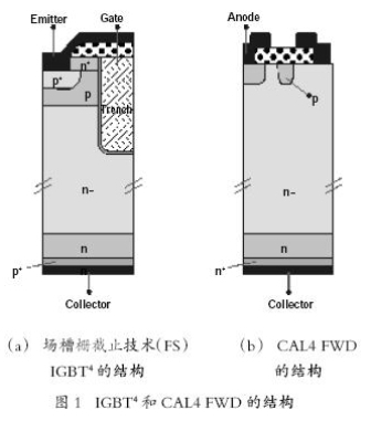 圖1(a)顯示了基于英飛凌溝槽柵場截止(FS)IGBT4 技術和賽米控CAL4 續(xù)流二極管的新一代芯片的基本結構。