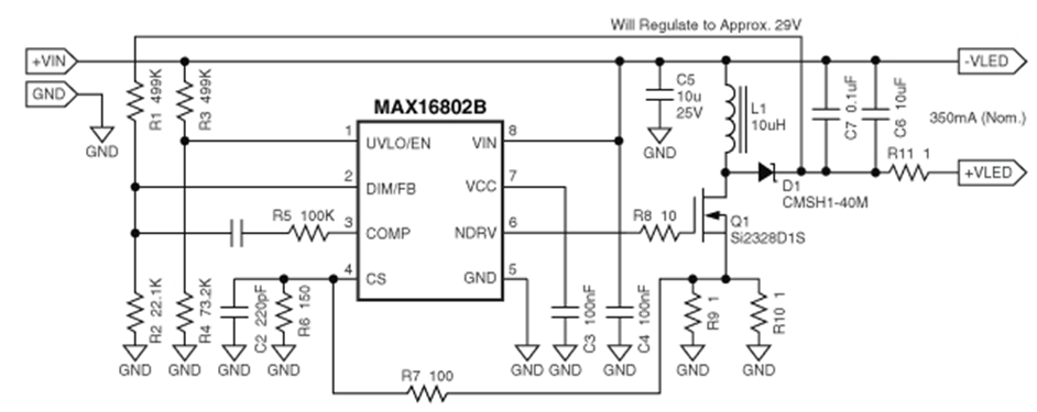 步驟6:R1和R2可選。它們用于調(diào)整+VLED至29V。這在輸出端出現(xiàn)意外開路時非常有用。如果沒有上述元件的分壓,輸出電壓有可能上升,導致器件損壞。