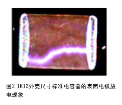 這些電容器的電容值通常是相同的,所以在這種情況下每個電容器的有效電壓(VC)都等于施加在該器件上的總電壓(VT)除以電容器的數(shù)目(n)即VC=VT/n。利用這種方法可以降低每個電容器組的有效電壓。高壓電路的設計者還利用這個原理,通過串聯(lián)單個電容器來降低每個電容器的電壓。不過,在兩種情況下總電容(CT)都將會下降:1/CT=(1/C1+1/C2…+1/Cn)利用一臺高速相機觀察到了另一個重要的問題,即在一個標準電容器設計上施加一個電壓之后出現(xiàn)的表面電弧放電現(xiàn)象,如圖2所示。“浮動電極”串聯(lián)設計可以有效地解決表面弧的問題。不過,與如前所述的標準設計相比,其主要弊端在于其較低的容量。
