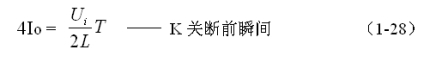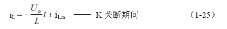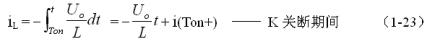 式中–Uo前的負(fù)號,表示K關(guān)斷期間電感產(chǎn)生電動勢的方向與K接通期間電感產(chǎn)生電動勢的方向正好相反。對(1-22)式進(jìn)行積分得: