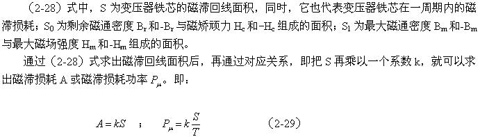 (2-30)式主要用于磁滯回線面積S的值小于第一次估算結(jié)果的情況;(2-31)式主要用于磁滯回線面積S的值大于第一次估算結(jié)果的情況。顯然用(2-30)和(2-31)估算出來的結(jié)果要比用(2-28)估算出來的結(jié)果更精確。