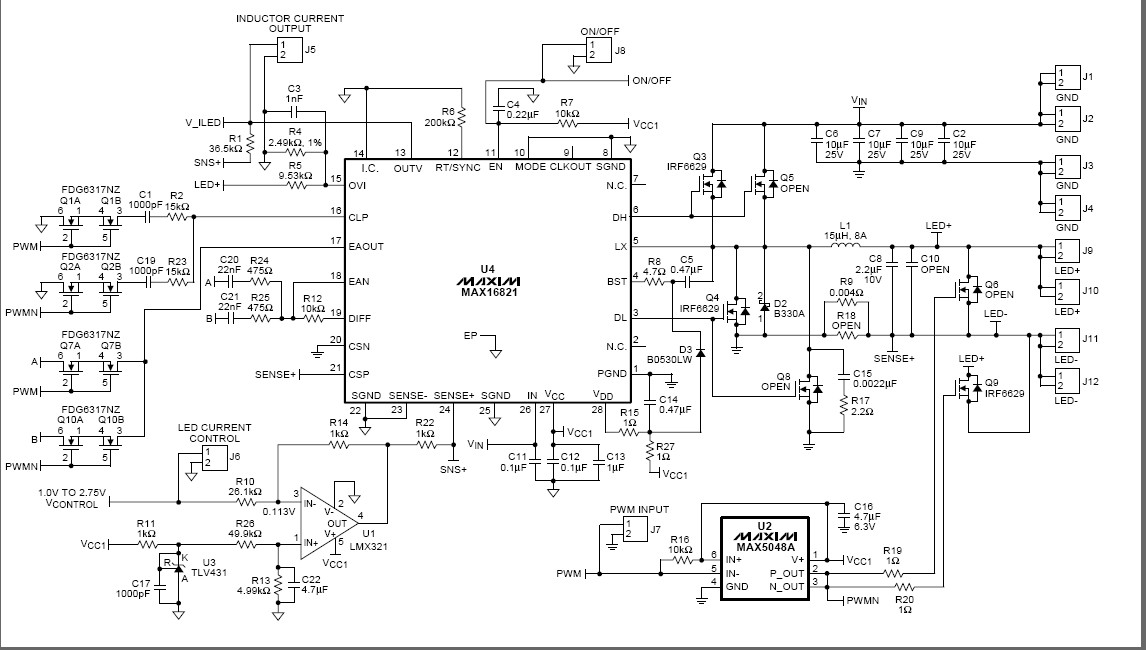 • 使用MAX16821 PWM HB LED驅(qū)動(dòng)器實(shí)現(xiàn)降壓轉(zhuǎn)換