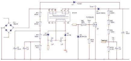 這里采用的控制器是FAN4810,該器件包含了先進(jìn)的平均電流“升壓”型功率因數(shù)校正實(shí)現(xiàn)電路,電源因此能夠完全滿足IEC1000-3-2規(guī)范的要求。它還包含了TriFaultDetect功能,有利于確保不會(huì)因PFC中單個(gè)組件的故障造成不安全事件。1A的柵極驅(qū)動(dòng)器又極大降低了對(duì)外部驅(qū)動(dòng)器電路的需求。此外,它的功率要求很低,既提高了效率也降低了組件成本。該P(yáng)FC還帶有峰值限流、輸入電壓中斷保護(hù)功能,還有一個(gè)過壓比較器,可在發(fā)生負(fù)載突然減小事件時(shí)關(guān)斷PFC部分。時(shí)鐘輸出信號(hào)可用來同步下游的PWM級(jí),以減少系統(tǒng)噪聲。