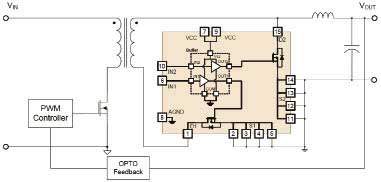 用來調(diào)整次級(jí)電壓的二極管通常由MOSFET代替,該模塊包含了柵極驅(qū)動(dòng)器和功率MOSFET,采用外引腳極寬的小型單列直插封裝,可減小寄生電感和電阻。
