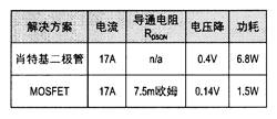 下表比較了在輸出功率為400W(24V,17A)、結(jié)溫為100℃時(shí),采用不同整流器獲得的結(jié)果: