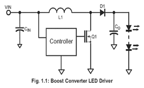 升壓電路是用來驅(qū)動LED的串聯(lián)電壓高于輸入電壓(圖1),并且有以下的特色: