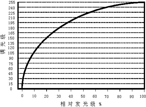 圖1DALI的256級對數(shù)調(diào)光曲線
