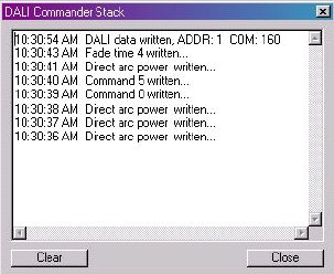通過DALI命令軟件可由信息堆棧報告相應(yīng)的事件,圖5表示含有相關(guān)信息的堆棧界面。
