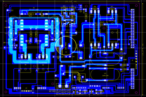 下面是功率主板的PCB截圖,長寬為200X150MM,因為,這部分的電路比較簡單,所以,我沒有畫原理圖,是直接畫了PCB圖的。該板布板時,曾得到好友的提示幫助,特在此表示感謝。