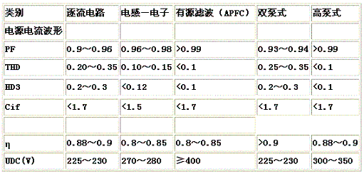 (1)美國(guó)VEPC提出的高頻能量反饋的電荷泵電路,主要指標(biāo)可達(dá)PF>0.995,THD<5%,Cf<1.6。