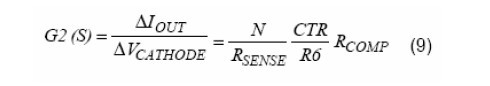 VCATHODE是AS431的陰極電壓,也就是誤差補償放大器的輸出電壓。CTR是光耦的電流傳輸比。R5(原文為R6,譯注)是與光耦的二極管串聯(lián)的限流電阻。RCOMP是AS3842的COMP腳當其試圖拉電流超過它的最大輸出電流時的輸出阻抗。