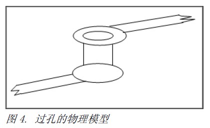 接地層確定后,將所有的信號地以最短的路徑連接到地層,通常用過孔將頂層的地線連接到地層,需要注意的是,過孔呈現(xiàn)為感性。過孔的物理模型如圖4所示。圖5所示為過孔精確的電氣特性模型,其中Lvia為過孔電感,Cvia為 過孔PCB焊盤的寄生電容。如果采用這里所討論的地線布局技術(shù),可以忽略寄生電容。一個1.6mm深、孔徑為0.2mm的過孔具有大約0.75nH的電 感,在2.5GHz/5.0GHz WLAN波段的等效電抗大約為12Ω/24Ω。因此,一個接地過孔并不能夠為RF信號提供真正的接地,對于高品質(zhì)的電路板設(shè)計,應(yīng)該在RF電路部分提供盡 可能多的接地過孔,特別是對于通用的IC封裝中的裸露接地焊盤。不良的接地還會在接收前端或功率放大器部分產(chǎn)生輻射,降低增益和噪聲系數(shù)指標。還需注意的 是,接地焊盤的不良焊接會引發(fā)同樣的問題。除此之外,功率放大器的功耗也需要多個連接地層的過孔。