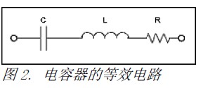 使用星形拓撲VCC引線時,還有必要采取適當(dāng)?shù)碾娫慈ヱ?,而去耦電容存在一定的寄生電感。事實上,電容等效為一個串聯(lián)的RLC電路,如圖2所示,電容在低頻段起主導(dǎo)作用,但在自激振蕩頻率(SRF)