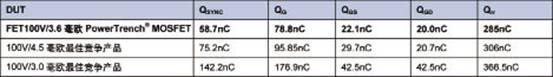 圖8 100V柵-源電容/3.6毫歐PowerTrench MOSFET與競爭產(chǎn)品的比較