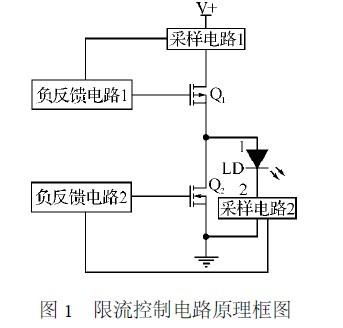 這是個(gè)雙限流電路,兩個(gè)限流電路確保通過(guò)激光二極管(LD)電流不會(huì)超過(guò)設(shè)定值。具體工作原理如圖1所示。