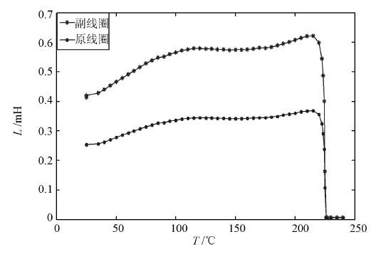 實(shí)驗(yàn)中還測(cè)試了電路中的輸入輸出的其他電感元件的電感量隨溫度的變化。在整個(gè)加熱階段,其他元件的電感量隨溫度變化很小,與變壓器電感量變化相比可以忽略。而且在變壓器電感量下降的階段,其他電感元件的電感量變化仍然較小。