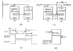 圖7 電源監(jiān)視IC電路及時(shí)序圖 a.一般用法 b.具有雙向RESET引腳時(shí)的用法 c.時(shí)序圖 d.引腳圖