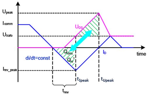 要計(jì)算MOSFET關(guān)斷過程中的開關(guān)損耗,必須首先確定反向電流峰值Irev_peak: