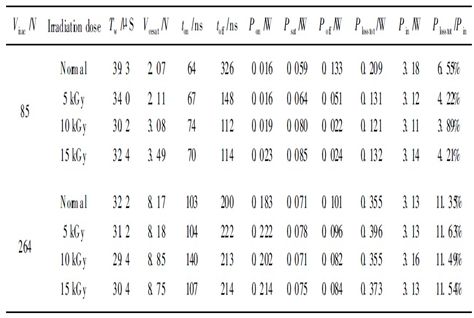 從圖3 中可以看到, 在較低的交流輸入電壓(如85 V和115 V )下, 使用輻照后的APT13003E比使用未輻照的APT13003E 系統(tǒng)效率都有所提高, 而在較高交流輸入電壓下(如230 V 和264 V ), 輻照后的APT13003E 未能使系統(tǒng)效率提高。在85 V 交流輸入電壓下, 輻照劑量為10 kGy 的APT13003E的性能最好, 開(kāi)關(guān)晶體管的總損耗由0. 209W 降低到0. 121W, 降低了42% , 使得系統(tǒng)整體效率提高了2. 1% , 若該開(kāi)關(guān)晶體管采用TO - 92封裝, 這將使開(kāi)關(guān)晶體管的結(jié)溫降低約11 ℃ ; 在115 V交流電壓下, 系統(tǒng)的整體效率也提高了約1. 4%, 開(kāi)關(guān)晶體管的結(jié)溫將降低約7℃, 這就有效地提高開(kāi)關(guān)晶體管的可靠性, 降低了開(kāi)關(guān)電源的損耗。